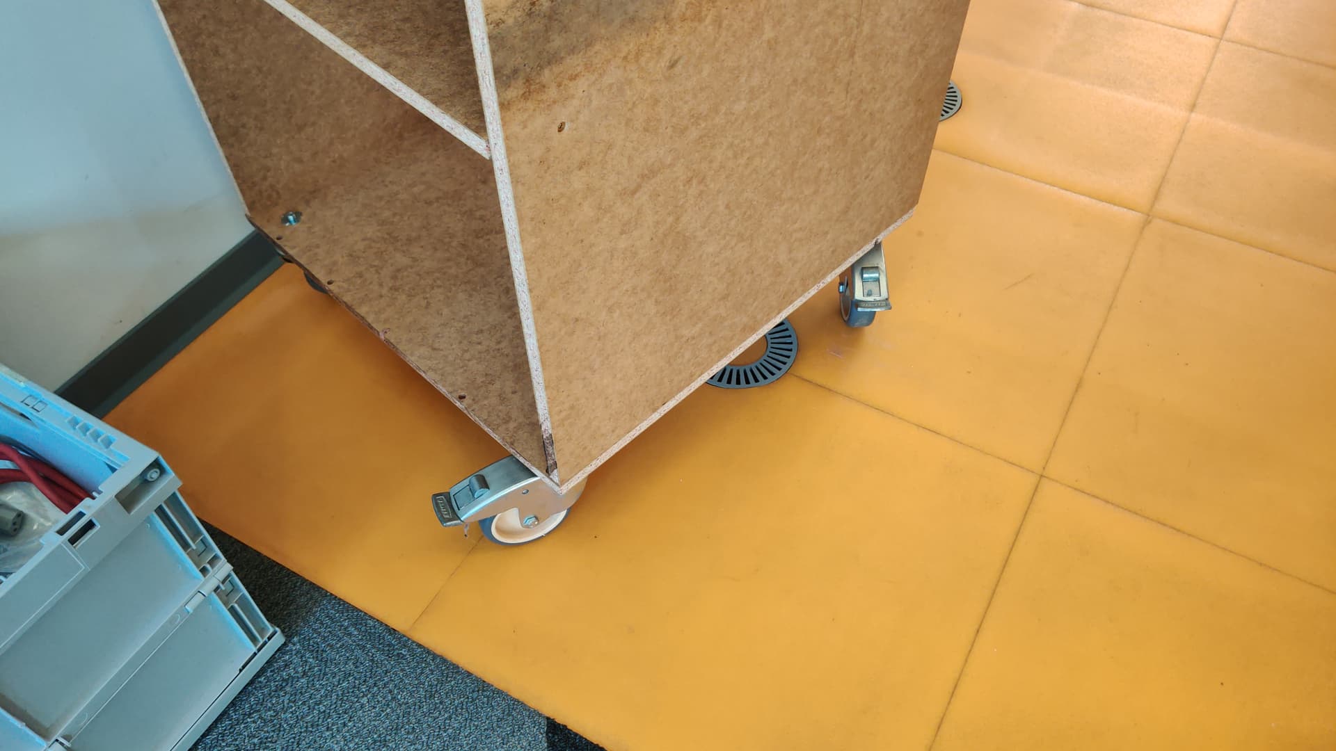 Ich plane am Freitag, dem 16. Mai, mit dem Bau anzufangen. Platten zuschneiden, Dübel verleimen, Rollen anschrauben, fertig.