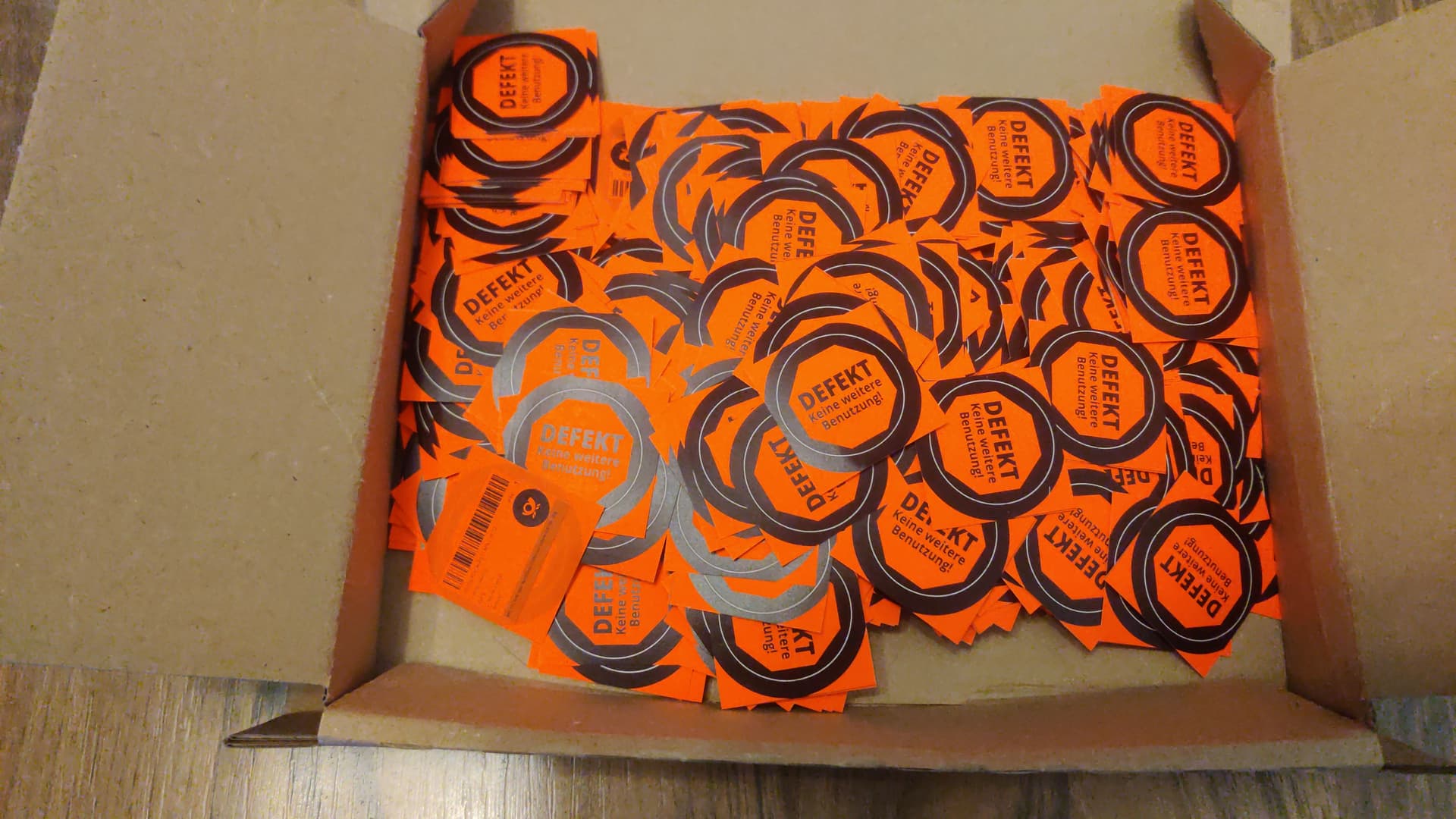 Fast vergessen, wir haben nun auch DEFEKT Sticker für das Repair Café, damit Dritte vor gefährlichen Geräten gewarnt werden, auch wenn sie nicht beim Repair Café waren, sondern diesen dann zu Hause begegnen