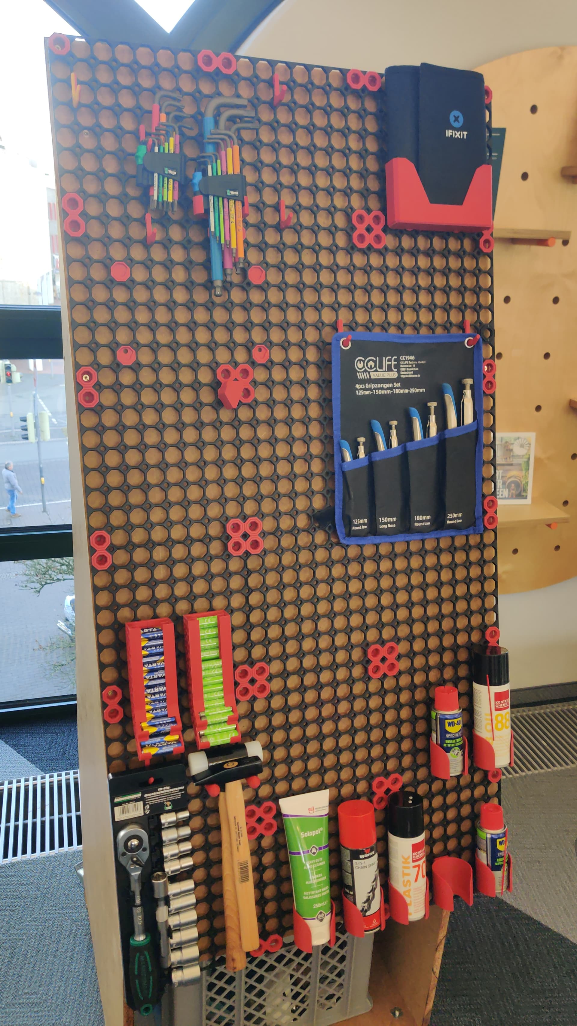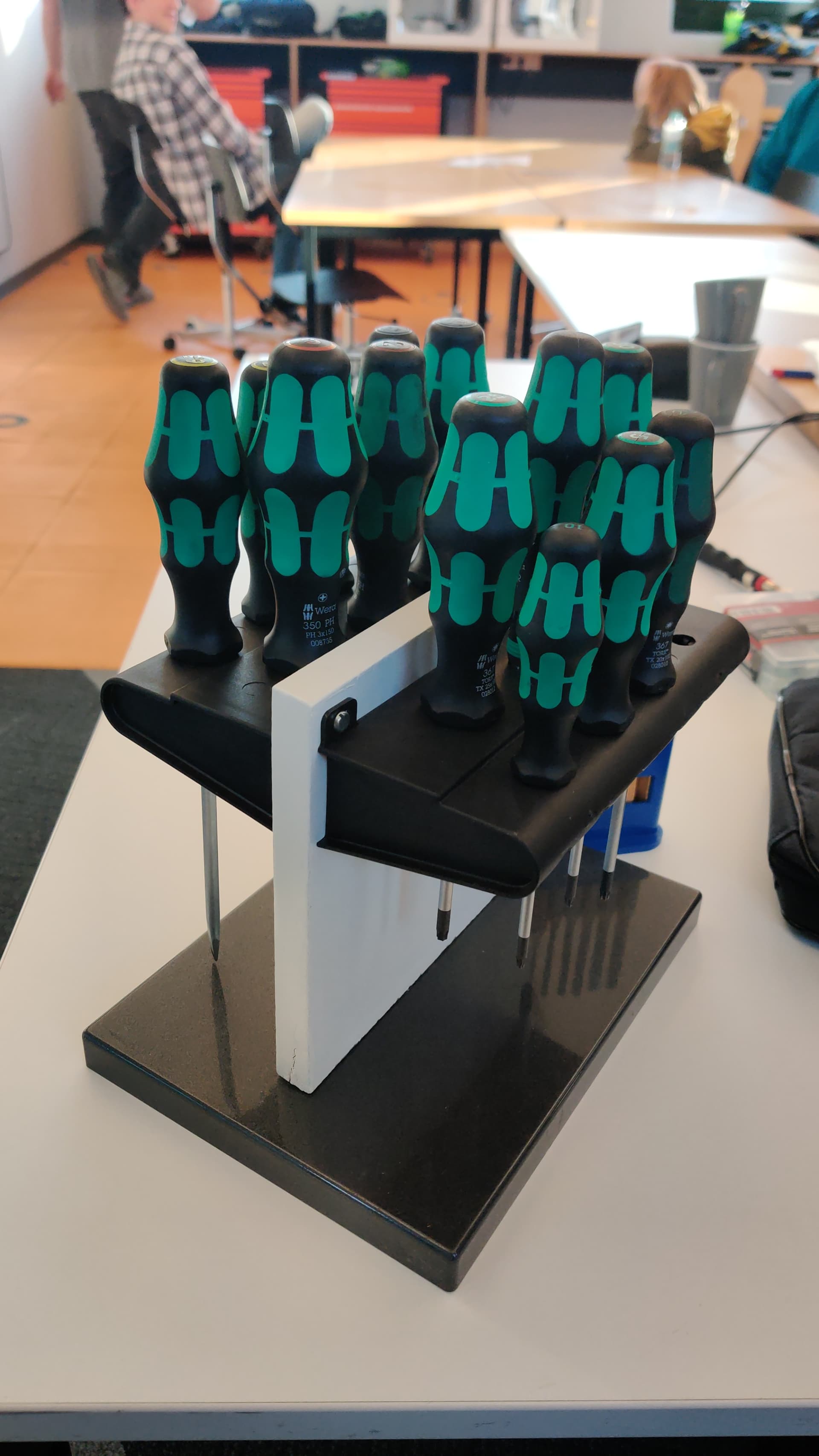 Unser erstes Multiboard wurde teilweise bestückt und für die Schraubendreher haben wir einen Ständer für den Tisch. @nielsfechtel bitte noch das Multiboard für die zweite Wand drucken. Material dafür liegt bei mir. @mneuhaus hat noch weitere Ständer für Schraubendreher, die er nicht benötigt, sodass diese demnächst alle ordentlich auf dem Tisch sind.